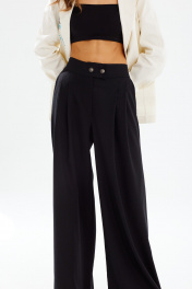 Брюки женские типа палаццо. По передним половинкам заложены складки, обработаны карманы с наклонным входом, застежка на молнию. На задних половинках брюк застрочены вытачки. Верх обработан широким притачным поясом (частично на резинке) с застежкой на петли и пуговицы. Декоративные элементы и фурнитура могут отличаться от заявленных на фото. Цвет материала может отличаться по тону в зависимости от настроек вашего устройства! Длина изделия по боковому шву 111,5 см. Ширина по линии бедер: 44р. - 100см, 46р. - 104 см, 48р. - 108см, 50р. - 112 см, 52р. - 116см, 54р. - 120см.
