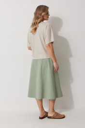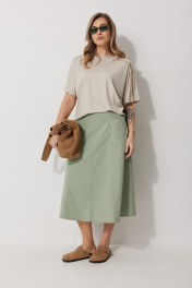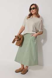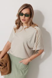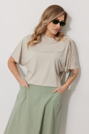 Джемпер женский прямого силуэта с цельнокроеным рукавом. Горловина имеет округлую форму, обработана притачной бейкой. На левом плече располагается притачная кокетка с декором.