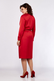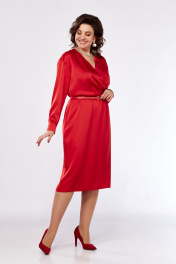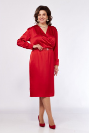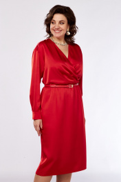 Платье женское из струящегося сатина, на трикотажной подкладке. Мягкий блеск ткани придает образу утонченность и элегантность. Лиф переда платья на запах, с двумя застроченными складками. Рукава со спущенной линией плеча, со складками по низу и отрезными манжетами на 2 петли и пуговицы. Отрезное по линии талии, куда вставлена резинка для создания прилегания. В боковом шве разрез. В комплект входит съемный декоративный пояс. Длина изделия:113см. Длина рукава: 62см.