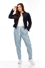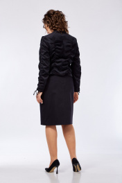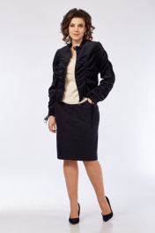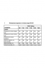 Жакет женский, полуприлегающего силуэта, из вельветовой ткани. По переду и спинке присборенные рельефные швы, и фигурные кокетки. Воротник стойка. Рукава со средними швами, собранными на кулисы с завязками. Застежка на молнию, петлю и пуговицу. Длина по спинке: 55см. Длина рукава: 62см.