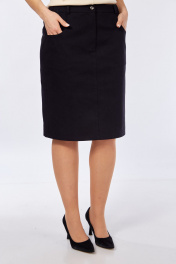 Юбка женская полуприлегающего силуэта из джинсовой ткани, со вставками по бокам. По переду функциональные карманы, средний шов. По спинке фигурные кокетки и средний шов. Пояс притачной с резинками по бокам. Застежка по переду на молнию, петлю и пуговицу. Длина по боку: 61см.