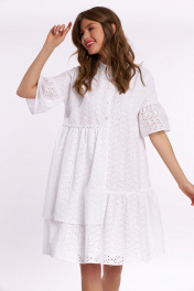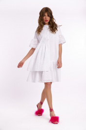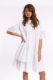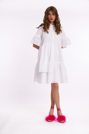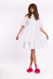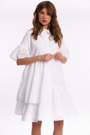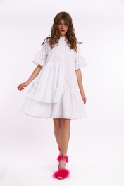 Летнее белое платье трапеция с воланом и карманами KaVaRi 1039.1 белый