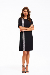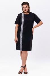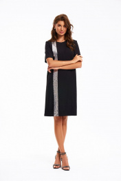 Платье женское умеренного объема, прямого силуэта. Перед с нагрудными вытачкаи и декоративной вертикальной деталью, выполненной из отделочного материала – «пайетки». Спинка со средним швом и застежкой на потайную «Молнию». Рукав втачной, короткий. Платье длиной до линии колена. Длина изделия - 101 см Длина рукава - 28 см