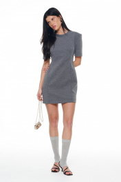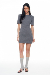 Мини-платье из плотного трикотажного полотна с акцентными плечами, коротким рукавом и отстроченными рельефами по переду и спинке. По горловине эластичная бейка. Застёжка на потайную молнию сбоку. Длина изделия 42-44р - 82.5 см 46-48р - 85см; Длина рукава 42-44р - 24.5см 46-48р - 25см.