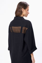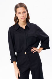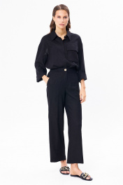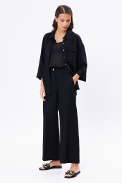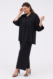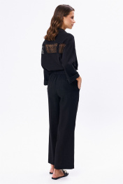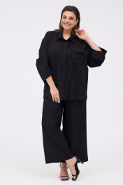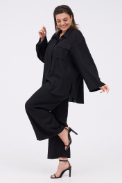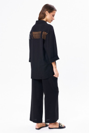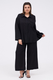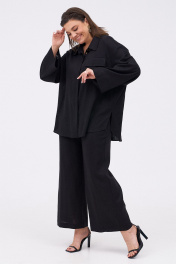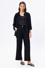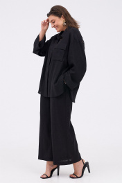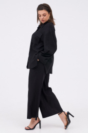 Льняной костюм из рубашки и брюк с разрезами KaVaRi 8023 черный