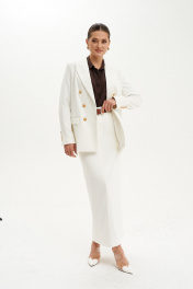 Двубортный жакет из текстиля с прорезными карманами для офиса Ketty К-03430 молочный