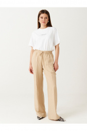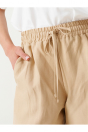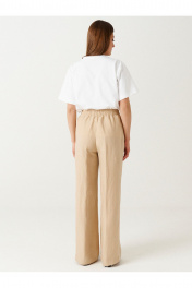 Брюки прямого кроя на резинке выполнены из льняной ткани. Характеристики: Прямой крой, прорезные карманы в боковых швах. Длина классическая.