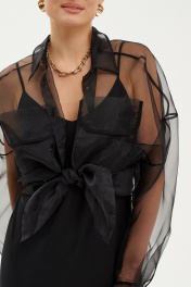Элегантная блузка из органзы станет стильным акцентом в вашем гардеробе. Прямой силуэт с накладным карманом и центральной застежкой на пуговицы добавляет образу выразительности и утонченности. Воротник-рубашка придаёт строгости и гармонично сочетается с длинными рукавами, манжеты которых оформлены притачной манжетой. Благодаря универсальному дизайну и легкости материала, эта блузка легко комбинируется как с классическими брюками, так и с юбками, добавляя элегантности и шарма. Идеально для тех, кто хочет создать модный и выразительный образ на каждый день.