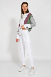 Спортивный костюм из нежного хлопка со свитшотами в мутицветном дизайне - это отличный выбор для тех, кто ценит стиль, комфорт и качество. Ткань из хлопка обеспечивает максимальную мягкость и приятность на ощупь. Костюм легкий и прочный, что позволяет свободно двигаться и не ограничивает движения. Он подходит для занятий спортом и активного отдыха. Это отличный выбор для тех, кто хочет выглядеть стильно и чувствовать себя комфортно. Идеально в сочетании с джемперами модели 40381, а так же свитшотами 3098 Только деликатная стирка 30 градусов, не использовать отбеливатели, изделие вывернуть наизнанку