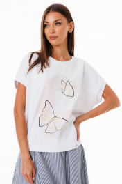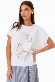 Футболка белая с рукавом летучая мышь цифровой принт Kivviwear 4072.26