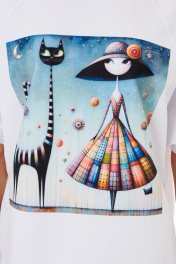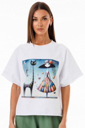 Белый спортивный джемпер из футера с принтами для casual Kivviwear 4267.08