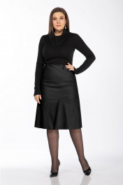 Юбка из экокожи черная с подкладом и шлицей Klever 299 черный