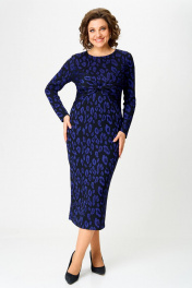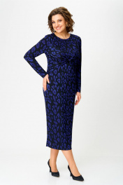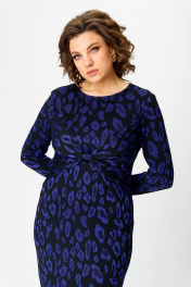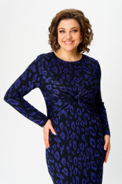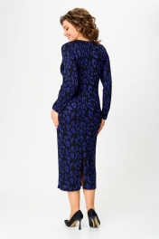 Нарядное женское патье из трикотажного полотна с добавлением вискозы. Силуэт полуприлегающий, вырез горловины круглый, рукав длинный, по спинке в среднем шве высокий разрез. Оригинальность платью придают задрапированные отлетные детали по переду платья, стянутые перемычкой.