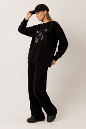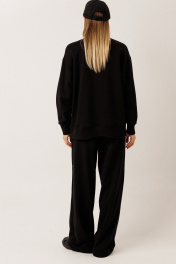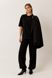Брюки из трикотажа «трёхнитка»: – широкий силуэт – пояс на резинке – по переду - карманы с наклонным входом – по низу расположены фиксаторы: при желании можно создать трендовый силуэт «аладдин»