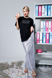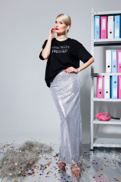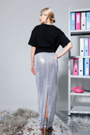 Юбка в пол из пайеток с высоким разрезом и резинкой KOKOdea 5.15 серебро
