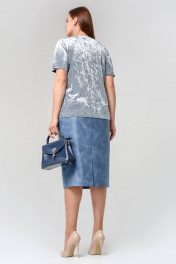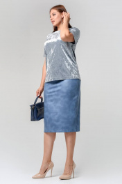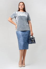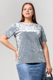 Джемпер из бархатного трикотажа прямого силуэта La rouge 3303 серо-голубой