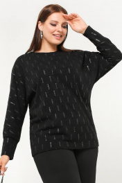 Джемпер свободного силуэта с блеском и рукавом летучая мышь La rouge 3308 черный-(блеск)