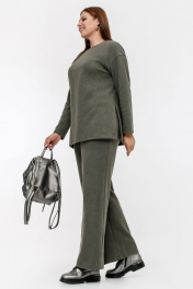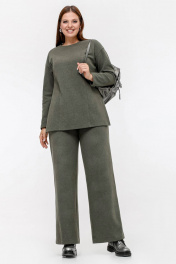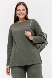 Джемпер с спущенной линией плеча и разрезами из трикотажа La rouge 3326 хаки