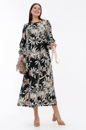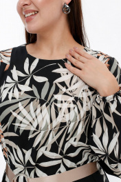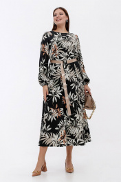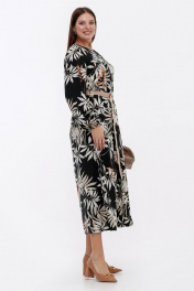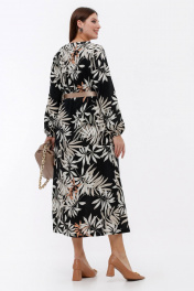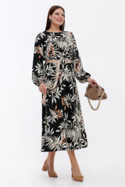 Платье с длинным рукавом и принтом для деловых образов La rouge 5455 тропики-набивной