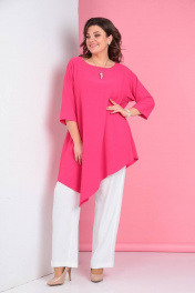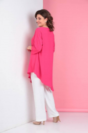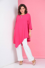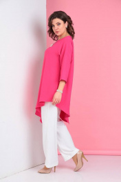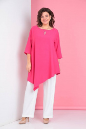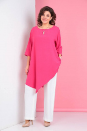 Летний комплект из свободной туники и прямых брюк LadisLine 1299 фуксия+белый