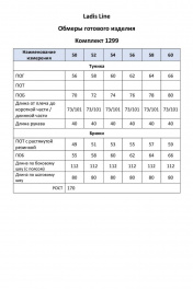 Женский комплект состоящий из туники и брюк. Туника свободного силуэта, вырез горловины округлый. Рукав втачной одношовный, длиной 3/4. Низ туники по полочке и по спинке с двумя асимметричными углами. Спинка цельная, без среднего шва. Брюки прямые, в боковых швах карманы. Застежка на потайную молнию по переду. Верх брюк на притачном поясе с эластичной тесьмой, застегивающийся на петлю и пуговицу.