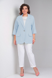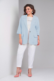Блуза, брюки, жакет LadisLine 1490 голубой+белый