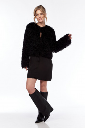 Стильный жакет - накидка идеально подойдет под любой праздничный наряд. Выполнен из ткани с перьями. Жакет длиной до талии, с длинным втачным рукавом. Модель на подкладке. ВНИМАНИЕ! Изделие подойдет на размеры 42-50!