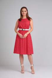 Летнее платье в стиле на каждый день с ремнем Lady Line 544 красный