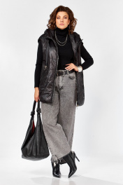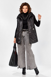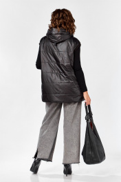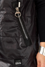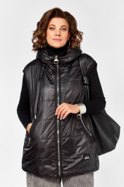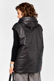 Модный жилет свободного силуэта с капюшоном на стойке из курточной ткани, уникальный бельгийский утеплитель «ISOSOFT» 100 г. на метр кв.,на ветрозащитной мембранной подкладке «Barrier». По полочкам прорезные карманы. Низ жилета на регулируемой кулисе. Застежка декор. молния.