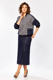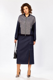 Юбочный костюм двойка для повседневной носки ,идеальное сочетание комфорта и стиля! Модный фасон , комбинация джинса и трикотажа, а также актуальный подбор по цвету подчеркнет ваш изысканный вкус в моде. В нем вы будете выглядеть потрясающе ! Джемпер свободного силуэта без подкладки,на молнии , с накладными карманами, воротник стойка, рукав втачной , линия плеча спущена . Джинсовая юбка, без подкладки,прямая, на резинке невероятно комфортная, не будет сковывать ваши движения, без застежки, с разрезом по ноге, накладным карманом и декоративной отстрочкой.