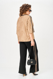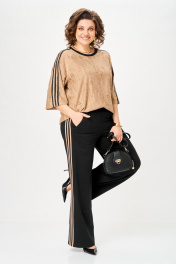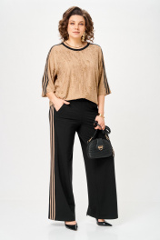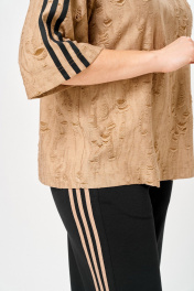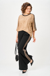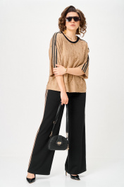Брючный трендовый комплект в стиле спорт шик, для повседневной носки, продуманный свободный фасон подходит на любую фигуру и на любой возраст. Футболка прямого силуэта, с круглым вырезом, укороченным рукавом реглан с контрастными лампасами, изготовлена из премиального мягкого трикотажа с рваным эффектом. Брюки с лампасами, из легкого спортивного трикотажа двух нитка свободного Кроя прямые без застежки, на эластичном поясе, с боковыми карманами. Длина футболки - р 50,52 - 68см, р 54,56 - 73см. Длина рукава от горловины - 47 см. Длина брюк - 107см. Возможна замена фурнитуры.