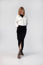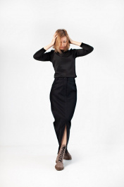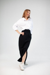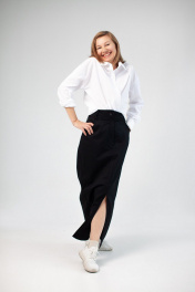 Юбка длина миди, спереди разрез. Карманы на передней половинке и накладные по задней половинке.