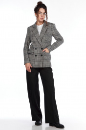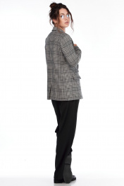 Двубортный жакет полуприлегающего силуэта длиной до линии бёдер. Рукава втачные двухшовные длиной до запястья, воротник и лацканы пиджачного типа. Застежка двубортная на петли и пуговицы. Детали переда с талиевыми вытачками, переходящими в линию кармана и рельефами от проймы до низа, карманы прорезные функциональные с листочками и клапанами. Спинка с рельефами от пройм до низа, со шлицей в среднем шве. Жакет на подкладке. Длина изделия по спинке 69,5-70,5 см в зависимости от размера, длина рукава 61-63 см. Жакет в клетку - универсальная вещь, которая должна быть в гардеробе каждой молодой девушки и женщины.
