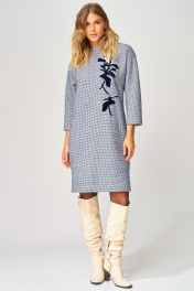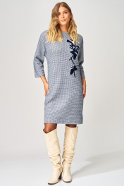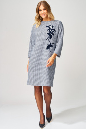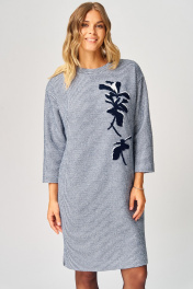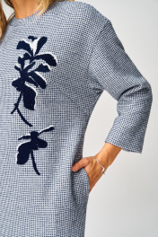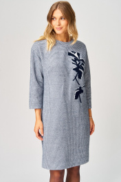 Трикотажное платье от LAIKONY прямого силуэта длиной мини. Вырез горловины округлой формы с втачной бейкой. Деталь переда с нагрудными вытачками, вверху нанесена аппликация-вышивка. Спинка цельная. Рукава втачные одношовные, длиной 3/4, линия плеча спущена. В боковых швах обработаны карманы и разрезы. Трикотаж средней плотности, хорошо тянется. Декор может отличаться от представленного на фотографии. Уютное повседневное платье для осенне-зимнего сезона.