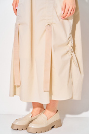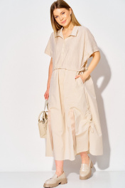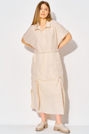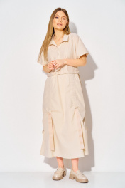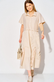 Женственное и стильное платье свободного силуэта от LAIKONY длиной до середины икр. Воротниквтачной с отрезной стойкой, застежка центральная на три пуговицы. Лиф платья выполнен из мягкого трикотажного полотна, а юбка украшена наклонными карманами, которые не только практичны, но и добавляют интересный визуальный эффект. Эластичная тесьма, вставленная в шов соединения лифа с юбкой, является оригинальной декоративной деталью.В боковых швах предусмотрены разрезы и «тоннели» с эластичной тесьмой-«жгутом», что позволяет регулировать силуэт платья в зависимости от вашего настроения. Линия плеча спущена, рукава цельнокроенные. Декор может отличаться от представленного на фотографии. Ткань верха - тонкий трикотаж, тянется. Низ - текстиль. Длина изделия по спинке 126 см., длина рукава от горловины 33 см. Подарите себе это платье — и вы ощутите, как оно превращает каждый ваш выход в особенное событие!