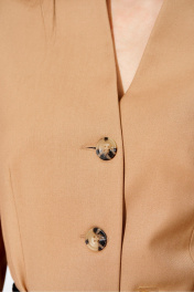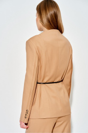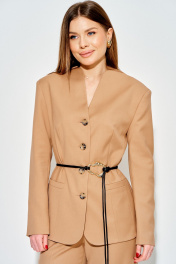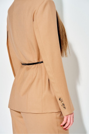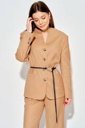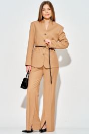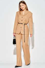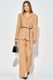 Ультрамодный деловой костюм от LAIKONY, состоящий из жакета и брюк. Жакет полуприлегающего силуэта с центральной застежкой на 4 петли и 4 пуговицы. Вырез горловины жакета фигурной формы. Детали переда жакета с отрезными бочками и вертикальными нагрудными вытачками. Карманы горизонтальные прорезные с листочками с втачными концами. Деталь спинки жакета со средним швом, отрезными бочками и рельефными швами. Рукава втачные двухшовные, по локтевым швам вставлена планка, по низу декоративно прикреплены по 4 пуговицы. Жакет с притачной понизу подкладкой. Съемный пояс в комплекте. Длина жакета по спинке 69-70 см, длина рукава 60-61 см. в зависимости от размера. Брюки на бедрах, плотно облегающие вверху и расширенные к низу. Пояс притачной, по спинке пояса вставлена эластичная тесьма. Застежка на тесьму-молнию, 1 потайной крючок и 1 потайную петлю и пуговицу. В боковых швах обработаны наклонные карманы, на передних и задних половинках брюк обработаны вытачки и заутюжены «канты». Внизу шаговых швов обработаны шлицы. На поясе прикреплены 5 шлёвок. Длина блюк по боковому шву 108 см. Декор может отличаться от представленного на фотографии. Наш модный костюм идеально подойдет для деловой встречи и других торжественных мероприятий.