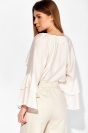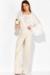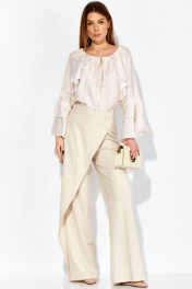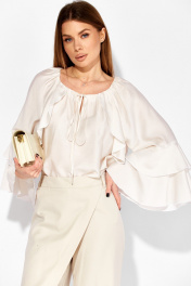 Представляем вам изысканную блузку от LAIKONY, которая станет настоящим акцентом вашего гардероба! Эта модель свободного силуэта идеально облегает фигуру и заканчивается на линии бедер, придавая вам непринужденный и стильный вид. Вырез горловиныокруглый со сборкой и завязками подчеркивает вашу шею и декольте, создавая утонченный образ. В боковых швах элегантные разрезы. Спинка блузки оформлена кокеткой, а в центре нижней части располагается аккуратная складка, придающая модели объем и динамичность. Блузка выполнена из магкой вискозы, не тянется. Длина изделия по спинке 64,5 см, длина рукава от горловины 63 см. Эта блузка станет идеальным выбором как для повседневной носки, так и для особых случаев. Сочетайте ее с юбками, брюками или шортами — она легко впишется в любой стиль! Не упустите возможность добавить эту великолепную блузку в свой гардероб! На фото с нашими брюками L-024. Также будет прекрасно смотреться с брюками L-942-2 нашей весенней коллекции.