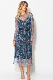 Платье демисезонное нарядное из атласа и сетки Laikony L-462 синий