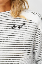 Джемпер: полиэстер 88%, ангора 7%, спандекс 5%. Брюки: полиэстер 65%, вискоза 33%, спандекс 2%