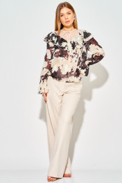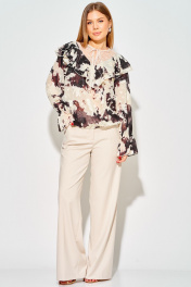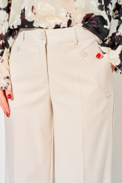 Стильные широкие брюки от LAIKONY . Брюки плотно облегают вверху и расширенные к низу, с притачным поясом-кокеткой со шлевками. Застежка на тесьму-молнию и 1 петлю и пуговицу. На передних частях брюк в боковых швах обработаны наклонные карманы с широкими листочками с втачными концами, на которых декоративно прикреплены по 2 пуговицы. На задних частях брюк обработаны вытачки. На передних половинках брюк заутюжены канты. Длина брюк по боковму шву с поясом 111 см. Наши модные брюки составят незаменимую часть вашего базового гардероба. На фото с нашей шифоновой блузой L-214.