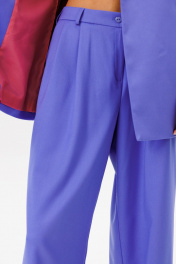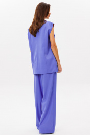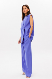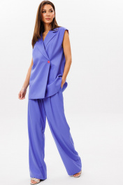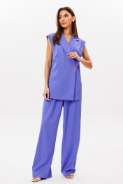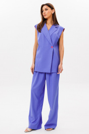Стильный гармоничный комплект, состоящий из двубортного жилета и свободных брюк в стиле палаццо. Жилет двубортный прямого свободного силуэта в стиле oversize на подкладке. Линия плеча слегка спущена 16 см. Изделие состоит из вертикальных рельефных деталей на полочке и спинке. Горловина оформлена английским отложным воротником с лацканами, застежка двубортная фронтальная петли/пуговицы в области чуть выше линии талии. Длина изделия по среднему шву спинки 73-75 см (в зависимости от размерного ряда). Брюки комплекта созданы в свободном стиле палаццо. В пояс брюк по спинке вставлена эластичная тесьма, шириной 3 см. Спереди пояс фиксируется горизонтально на петли/пуговицы и вертикалную закрытую клапан-молнию (гульфик). При желании в пояс можно вставить ремень, так как имеются шлевочные держатели. В боковых швах: карманы с наклонным входом, на поясной линии талии расположены две неглубокие складки для свободы движения. Длина брюк по боковому шву 105-107 см (в зависимости от размерного ряда). (фурнитура может отличаться от представленной на рекламном фотоматериале) Особые рекомендации: рекомендуется холодная деликатная ручная стирка, без использования отбеливающих СМС, без интенсивного трения. Сушка в вертикальном положении. ВТО с минимальным паром.