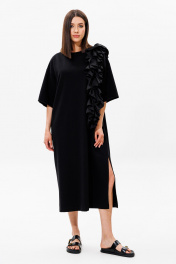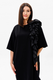 Платье oversize из хлопка с ассиметричной рюшей и разрезом Ларс Стиль 912 черный