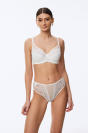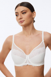 Бюстгальтер с глубокой чашкой из тонкого поролона, декорированный кружевом и тонкой эластичной сеткой. Воплощение изящества и комфорта, обеспечивающие отличную поддержку. В модели присутствуют каркасы («косточки»).