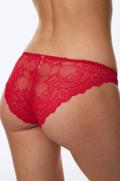 Трусы-слипы с низкой линией талии полностью выполнены из эластичного кружева. Подкладка ластовицы из 100% х/б.