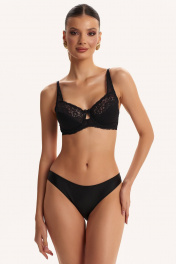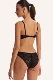 Трусы-слипы с низкой линией талии из эластичного трикотажного полотна (микрофибра). Задняя деталь полностью из эластичного кружева. Подкладка ластовицы из 100% х/б.