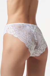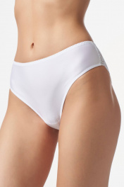Трусы с высокой линией талии из эластичного трикотажного полотна (микрофибра). Задняя деталь полностью из эластичного кружева. Подкладка ластовицы из 100% х/б.
