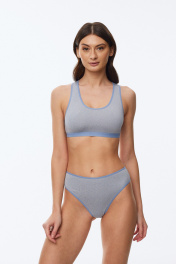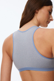 Бюстгальтер - топ из эластичного трикотажного полотна без каркасов («косточек») без застёжек. Деликатно облегает женское тело, не сдавливая плечи и грудь. Мягкая резинка по нижнему краю бюста удерживает бюстгальтер, не позволяя ему задираться. U-образная спинка снижает давление при ношении и делает топ-бюстгальтер удобным.