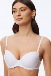 Базовый гладкий бюстгальтер с формованной чашкой (эффект двойного «пуш-ап»). В конструкции присутствуют каркасы ("косточки"). Бочки гладкие. Бретели регулируются по длине, но не отстегиваются.