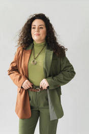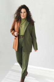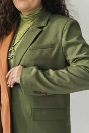 Жакет прямого свободного кроя выполнен из лащенной текстильной поливискозы высокого качества. Однобортный жакет имеет английский воротник, прорезные карманы с патами, шлицу по спинке. Жакет на подкладке. Подкладка жаккардовая в тон основной ткани. Женский жакет стеговается на 1 пуговицу. Пуговицы маловые в тон закета, на левом рукаве 1 металлическая пуговица с эпоксидной смолой в виде сердечка, которая является декоративным элементом. Жакет выполнен как в классическом однотонном вариенте, так и в трендовом направлении колорблок, где два красивый оттенка дополняют друг друга и дают настоящий полет фантазии в вариативности сочетиний и комбинаций образов. Длина изделия по спинке - 72 см, длина рукава - 60 см. Собрать костюм можно с брюками артикулы: Р-025 или Р-026