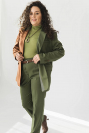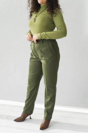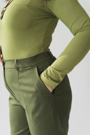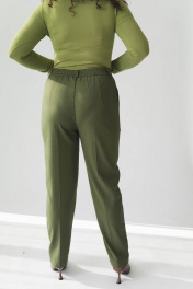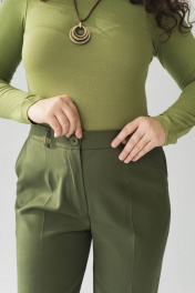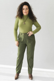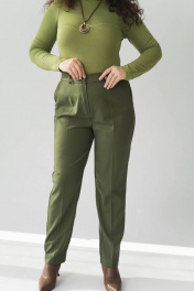 Брюки женские прямого кроя слегка заужены к низу. Модель дудочки. Женские брюки выполнены из лащенной текстильной поливискозы высокого качества. Идеальная посадка по фигуре, благодаря глубоким выточкам по попе и вставленной резинке на задней части пояса. Высокая посадка. Брюки застегиваются на молнию и пуговицу. Есть шлевки для ремня. Имеют карманы с отрезным бочком и отглаженные стрелки. Длина от пояса по внешнему шву - 100 см, длина по внутреннему шву - 72 см. Составить прекрасный деловой костюм можно с жакетом арт: G-025